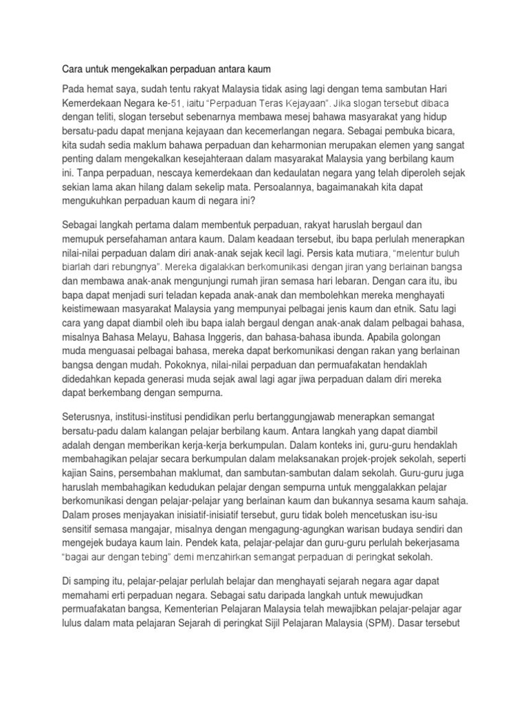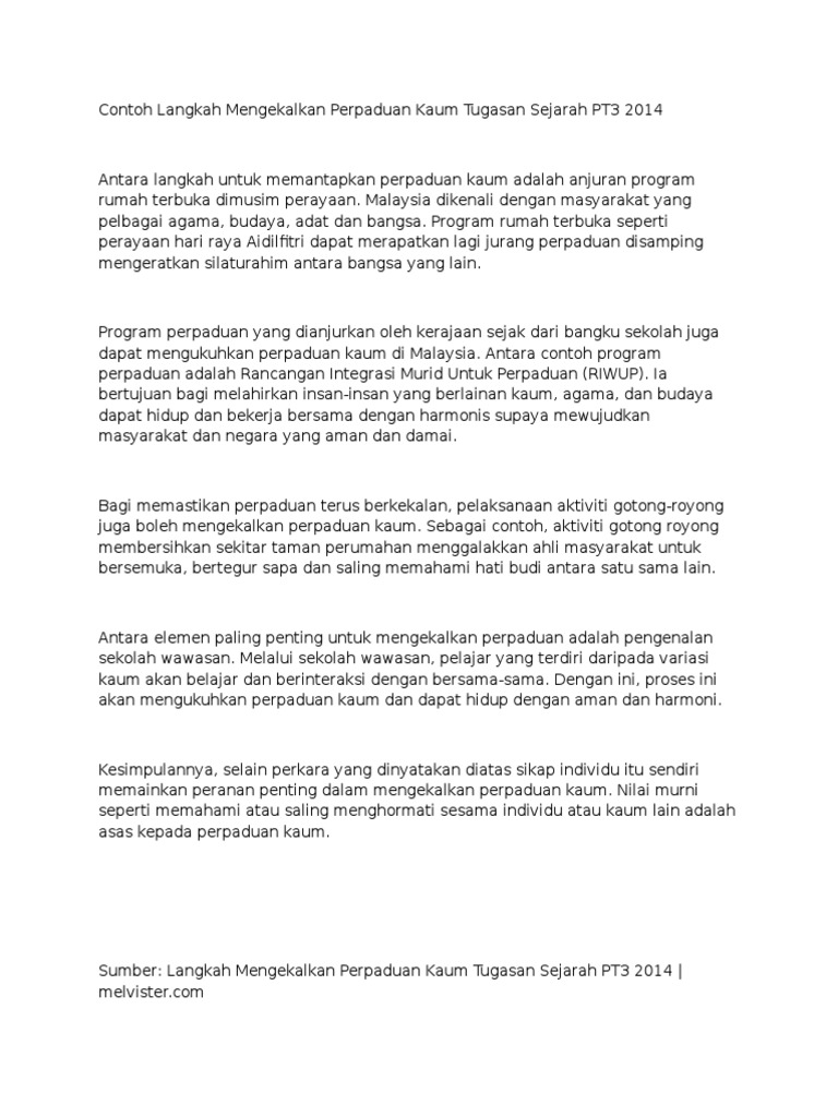 Contoh Karangan Cara-cara Nak Mengukuhkan Perpaduan Kaum Written By sacon16 Saturday, May 21, 2022 Add Comment Edit Contoh Langkah Mengekalkan Perpaduan Kaum Tugasan Sejarah Pt3 2014 Pdf Cara Cara Untuk Mengekalkan Perpaduan Cara Untuk Mengekalkan Perpaduan Pdf Cara Mengukuhkan Perpaduan Pdf Karangan Cara Cara Memupuk Perpaduan Kaum Di Malaysia Gallery Baru Share this post